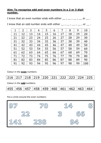 Year 1 Year 2 Odd and Even number posters and worksheets ...