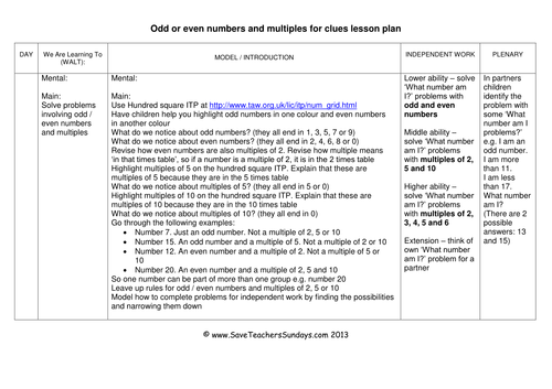 Odd, Even and Multiples KS1 Worksheets, Lesson Plans ...