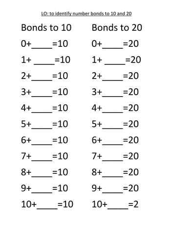 Work sheets: Number Bonds to 10, 20 and 100 by ...