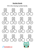 Number Bonds to 20 Worksheets