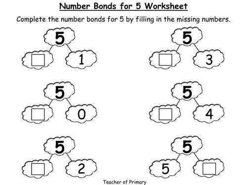 Number Bonds Worksheet Primary Resources. Learning number bonds is an important skill for kids to master. You can do the exercises online or download the worksheet as pdf.