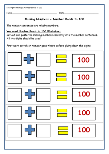 Work sheets: Number Bonds to 10, 20 and 100 by ... (Gavin Dunn)