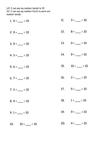Bonds to 10 and 20.docx | Kids math worksheets, Ks1 maths ... (May Stewart)