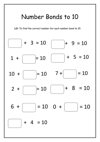 Number Bonds to 10 Worksheet | Teaching Resources