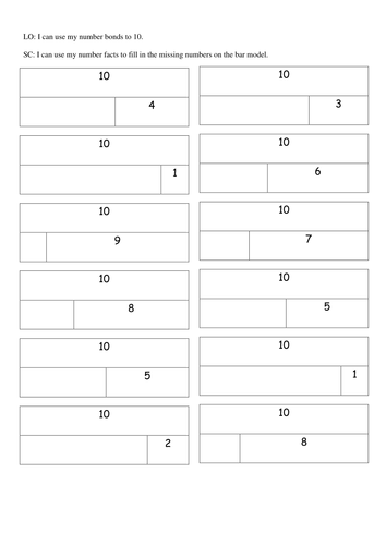 Addition and Subtraction - Number Bonds To 10 with Bar ...