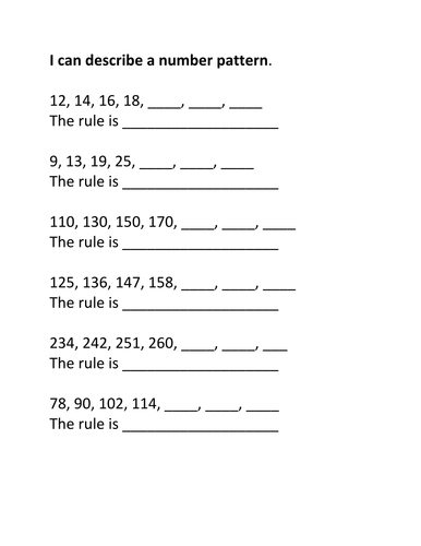 Worksheets are Name mixed numbers, Sets of numbers in the real number system, Odd or even Picture pattern worksheets contain repeating pattern, growing pattern, size, shapes and color pattern, equivalent pattern, cut-paste activities and more. The numbers in these series range from simple addition or The worksheet can also be configured to ask the student to express the pattern in words. In a pattern, there is a rule that controls which number will come next in the series.